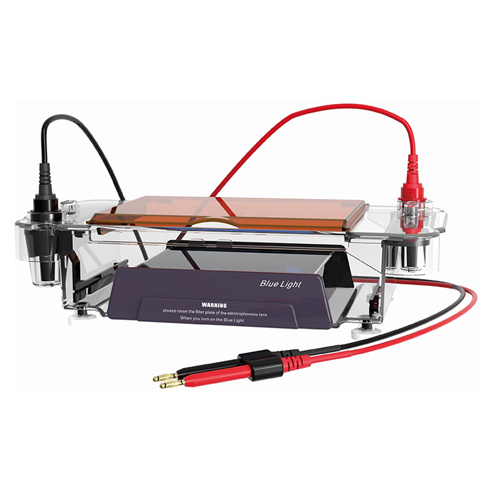 Horizontali elektroforezės kamera elektros lauku skatina įkrautų molekulių migraciją gelyje ir atskiria molekules, pasinaudodama jų skirtingu migracijos greičiu elektros lauke. Gelis dedamas į elektroforezės rezervuarą, o mėginys įdedamas į gelį per mėginio rezervuarą. Prie maitinimo šaltinio prijungti elektrodai sukuria elektros lauką, kuris atskiria mėginio molekules pagal molekulių dydžio, įkrovos ar morfologijos skirtumus. Šio proceso metu elektroforezės procesas stebimas elektroforezės rezervuare mėlynos šviesos spinduliu, kad būtų galima stebėti mėginio atskyrimą realiuoju laiku. Elektroforezei progresuojant, mėginiai palaipsniui atskiriasi ir sudaro juostas. Įrangos realaus laiko mėlynos šviesos stebėjimo įrenginys gali padėti eksperimentuotojui bet kuriuo metu patikrinti elektroforezės juostų būklę, kad būtų užtikrintas sklandus eksperimento eiga. Tuo pačiu metu atverčiamas dangtelis ir automatinio išjungimo funkcija užtikrina eksperimentuojančių asmenų saugumą.